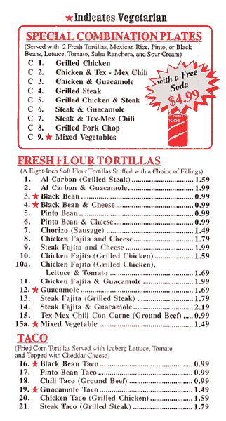 There are two gimmicks at Fresco: low prices and the tortilla machine. (In New York, a Chinese-owned Mexican chain isn't a gimmick.) The operator slings a ball of dough into the top of the machine and it is flattened and ejected out onto a hot griddle. A minute on each side and the tortilla is done, ready to be filled with any combination of beans, cheese, chicken or beef, chorizo, guacamole, and so on. My favorite is the chicken fajita ($2), crusty grilled chicken sliced to order with onions and peppers. The cashier hands you a bottle or a plastic dish of hot sauce, and away you go. The flour tortillas aren't much like homemade Mexican ones, but as with bagels, any fresh tortilla is better than any stale one. While I was eating, a group of jazz enthusiasts came in and talked jazz while marveling at the prices.